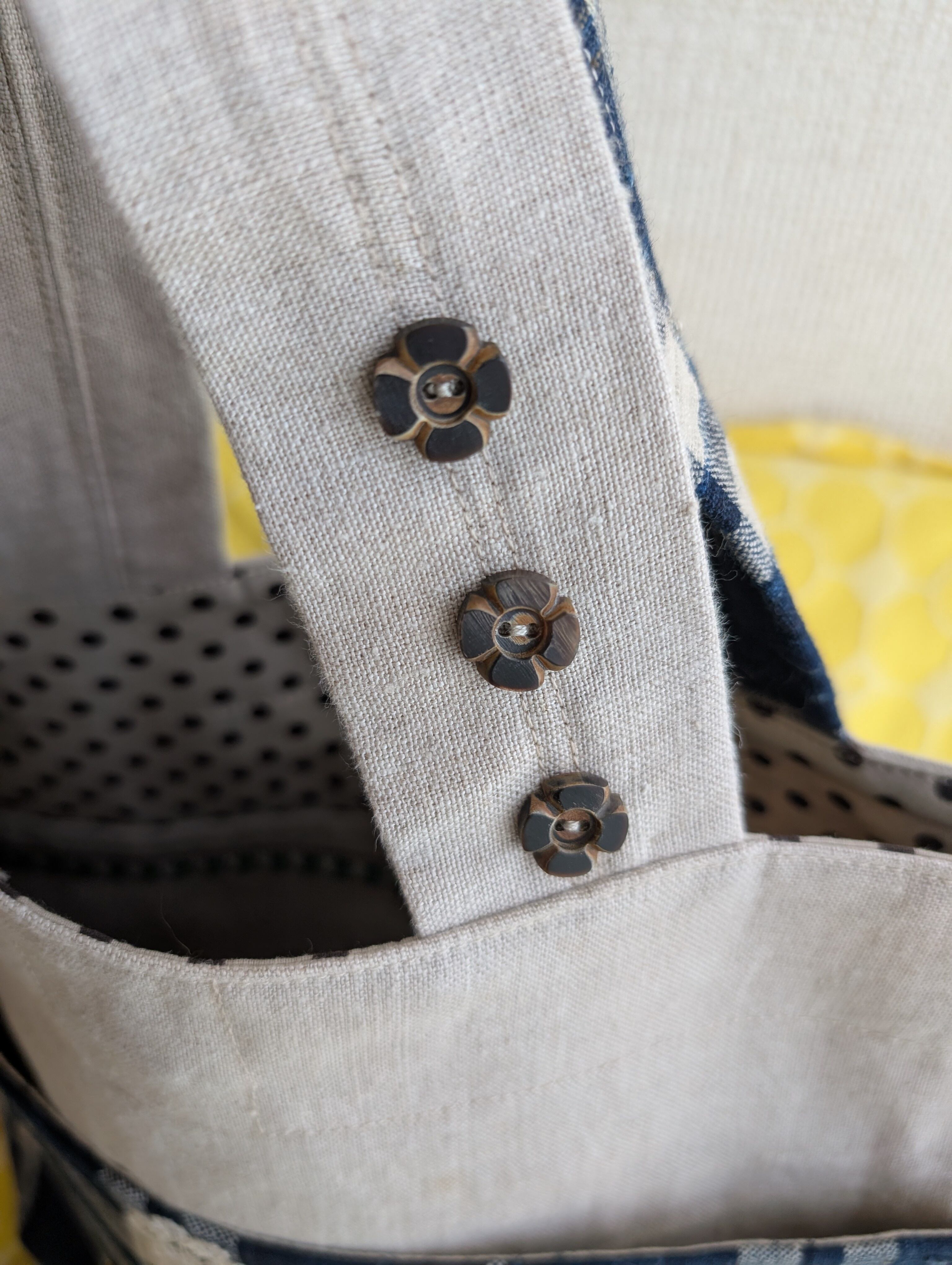 - カラーは、ナチュラルな麻色と古布チェックのコンビ