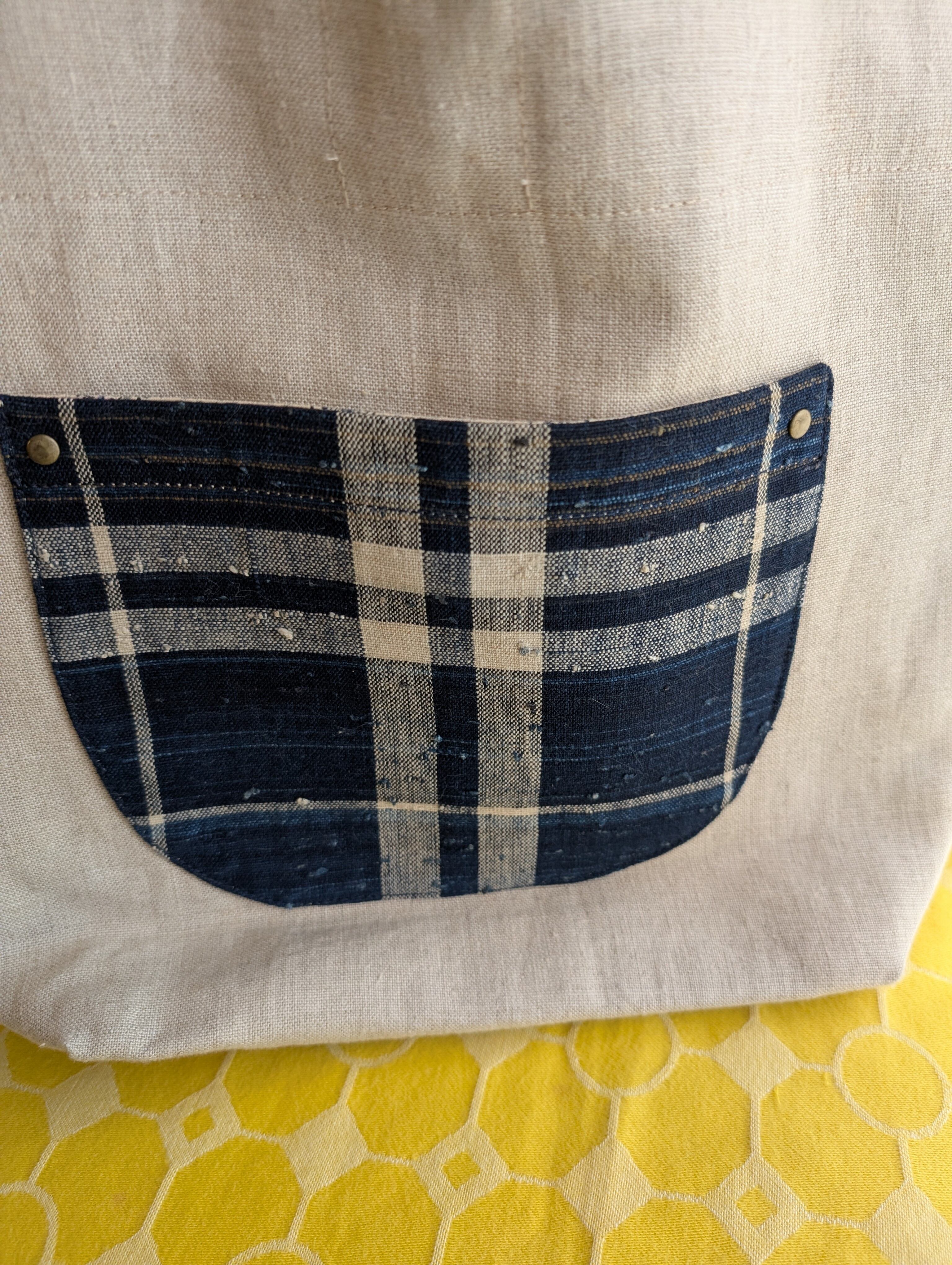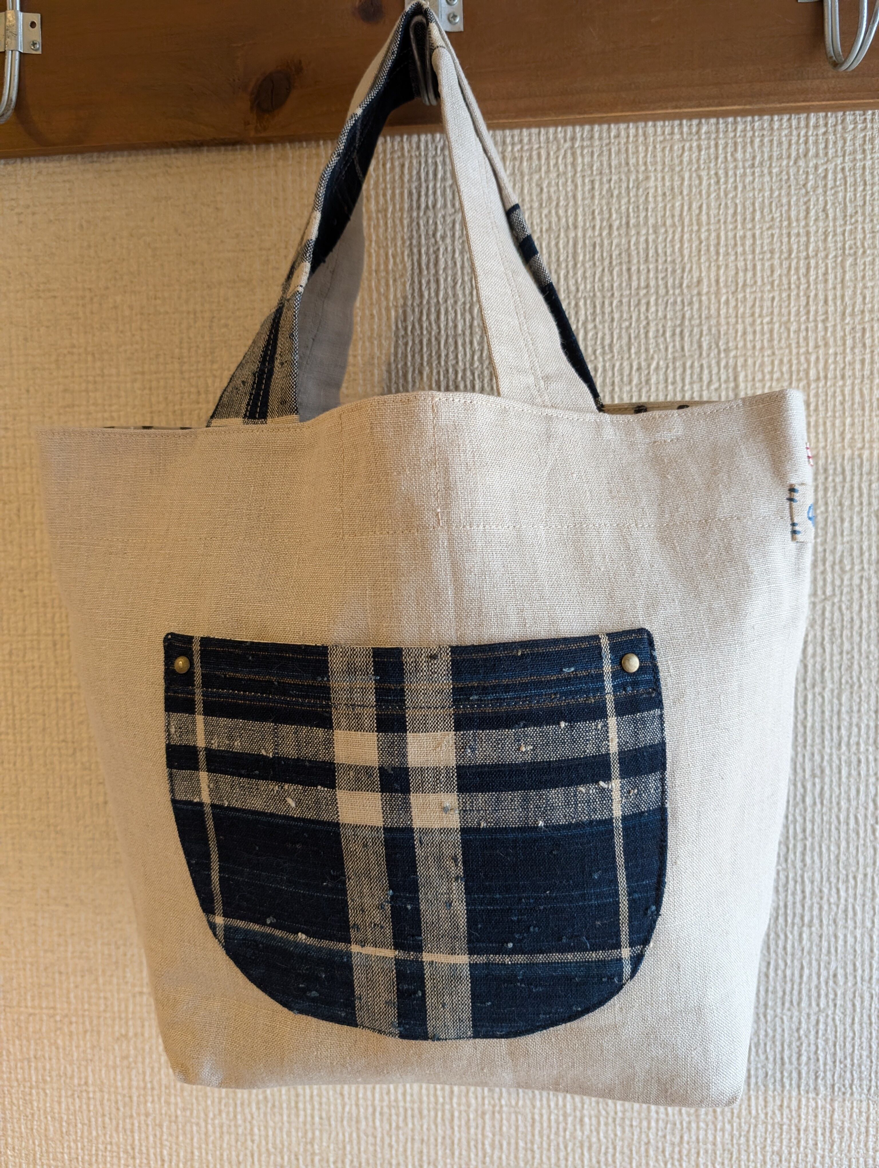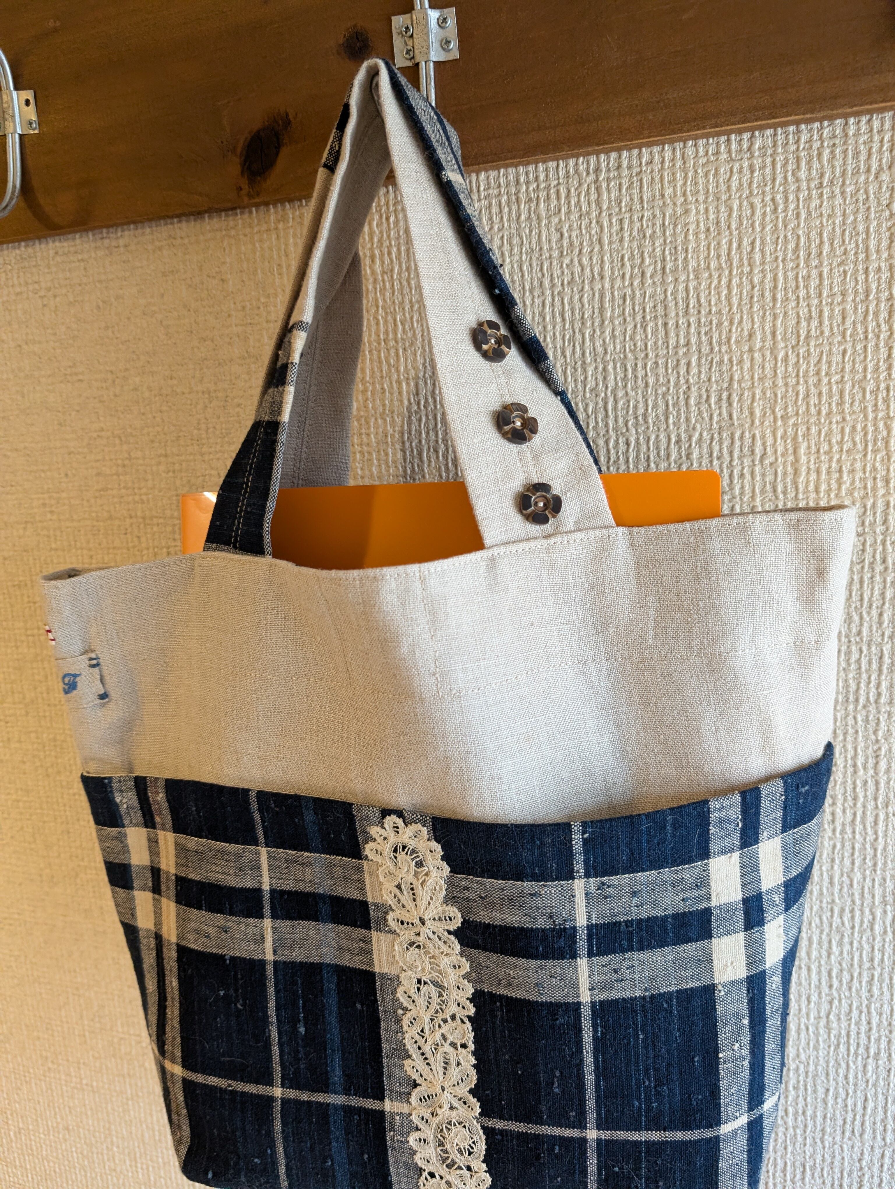 心を惹きつける✶France麻と古布チェックコンビ✱トートバックのご案内です。