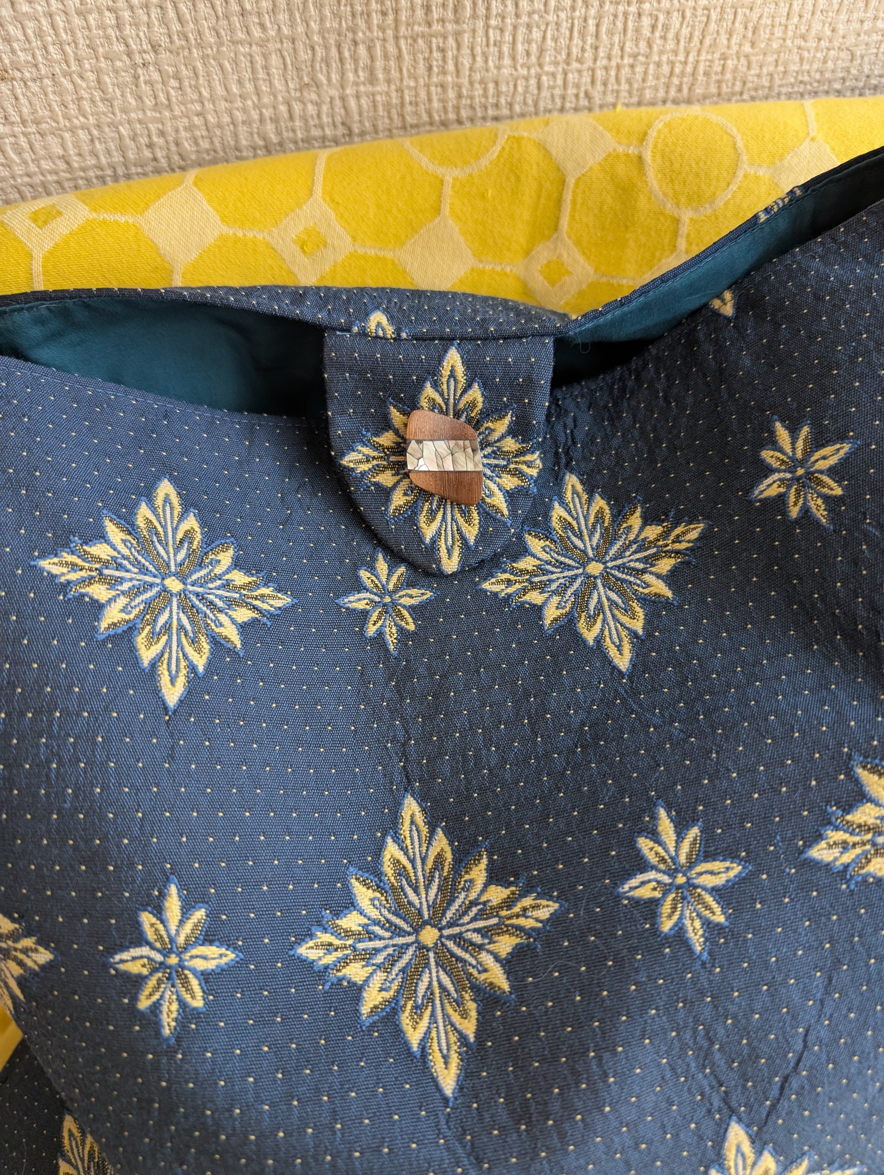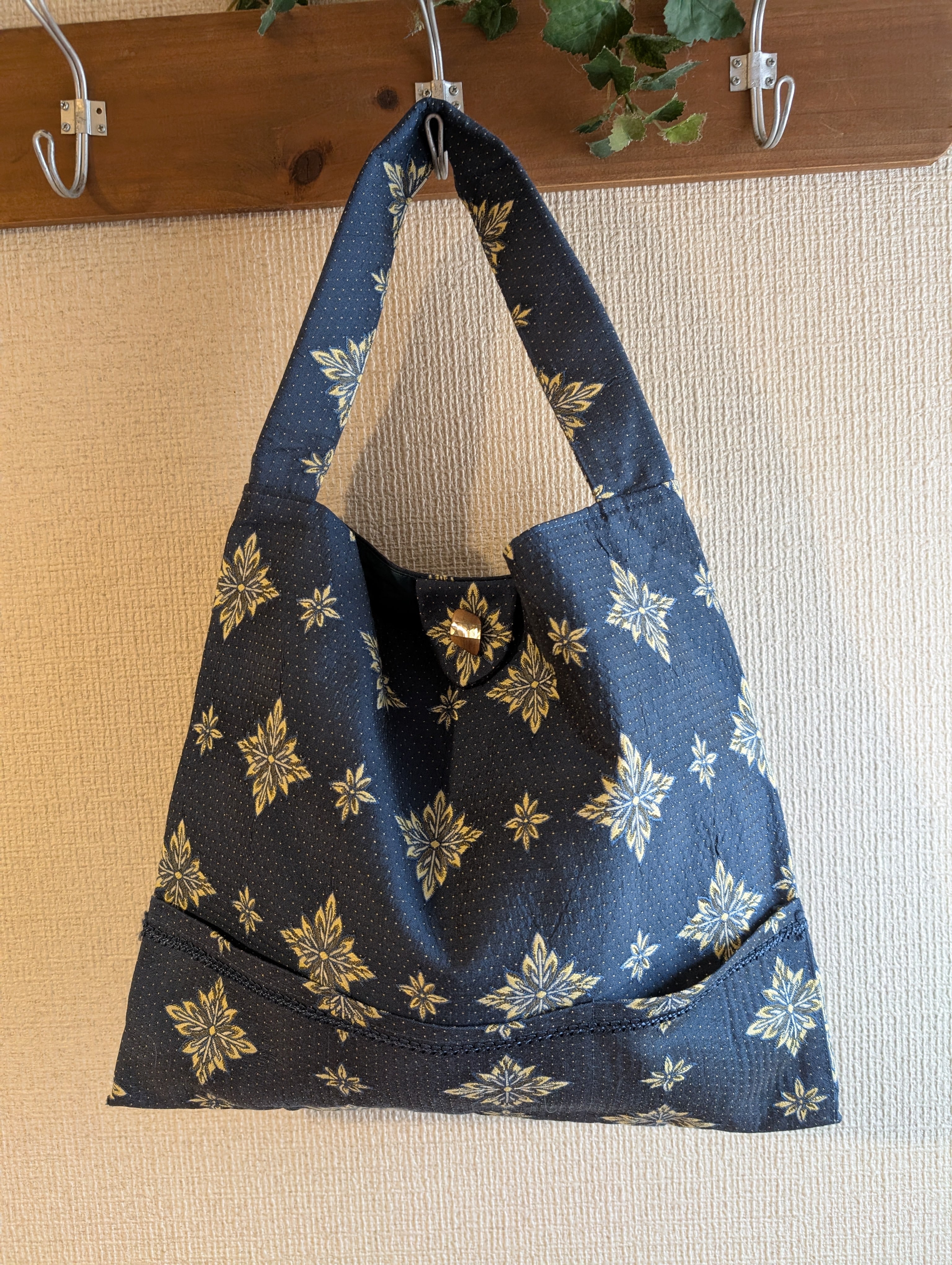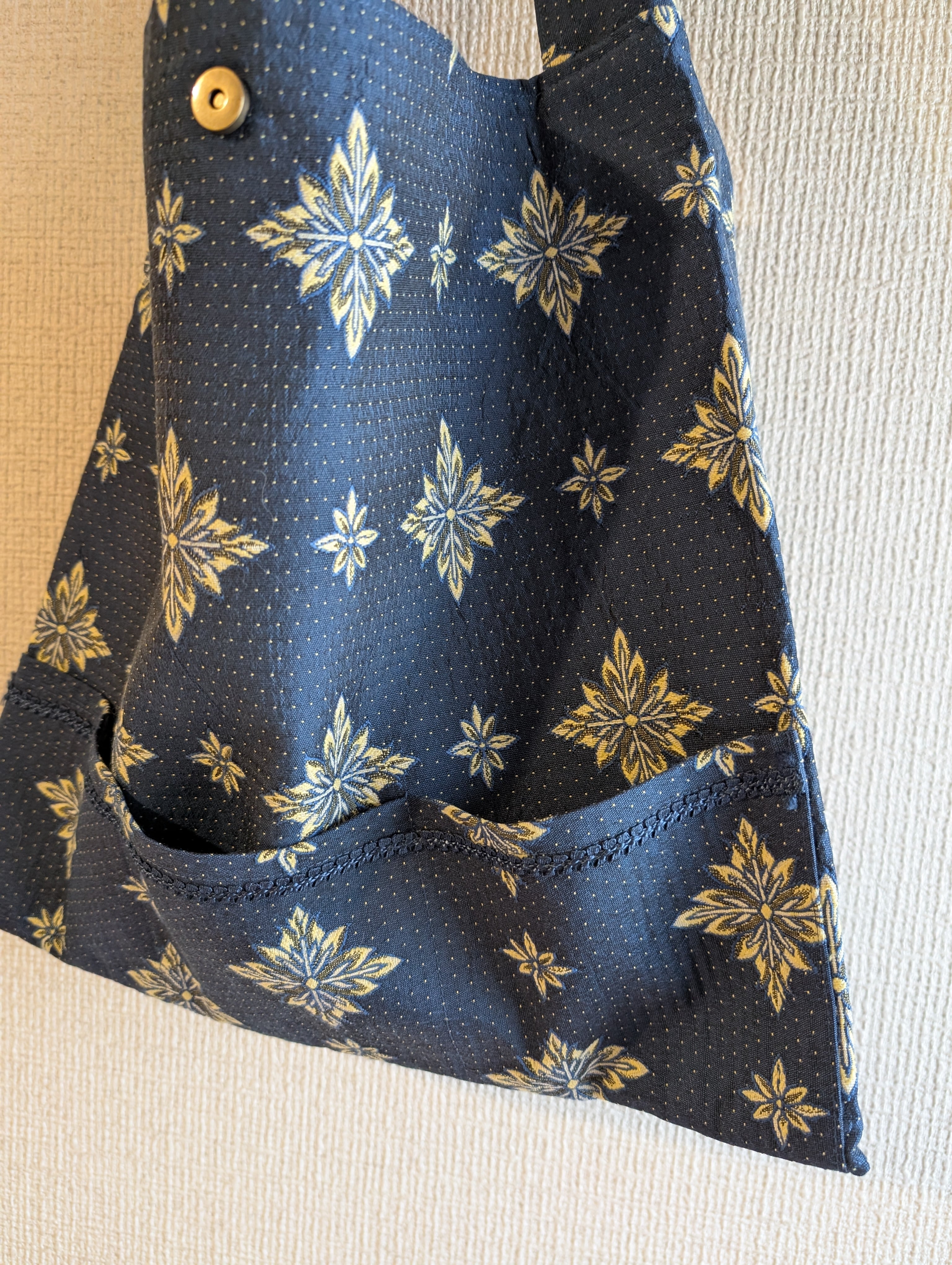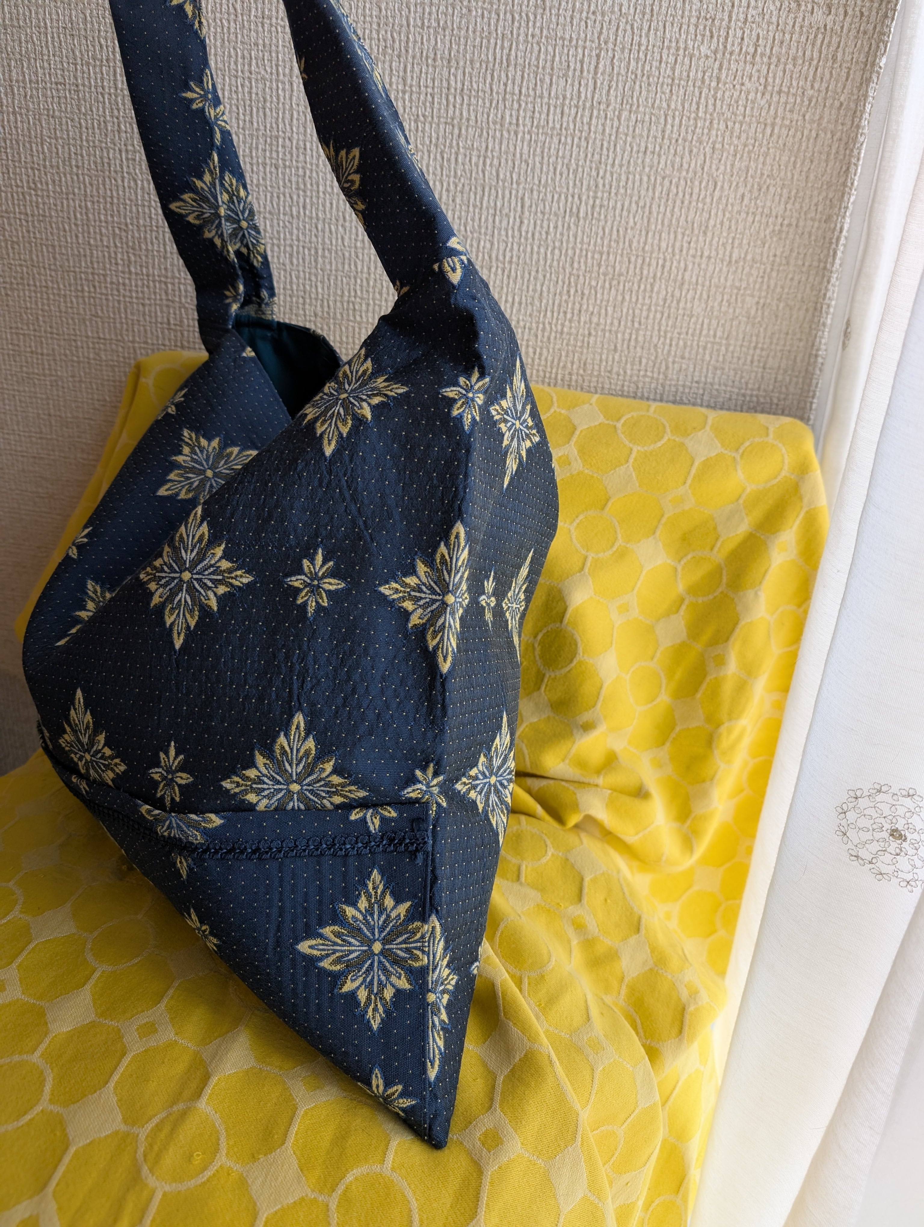 SILK混ジャガードショルダーバック✶ヴィンテージ生地✶ネイビー