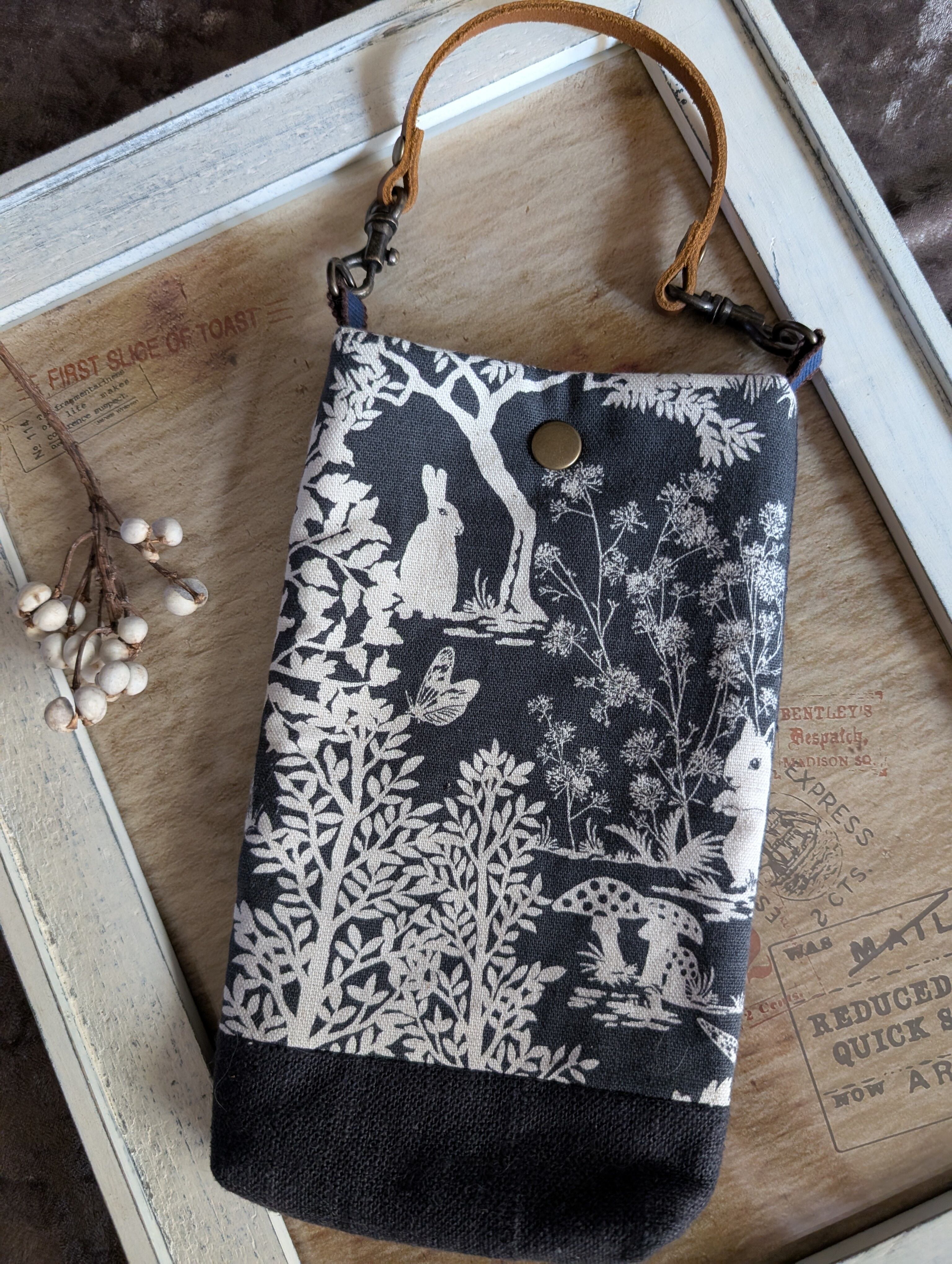 携帯ケース✱レザーストラップ付き✱森のしずく柄✱