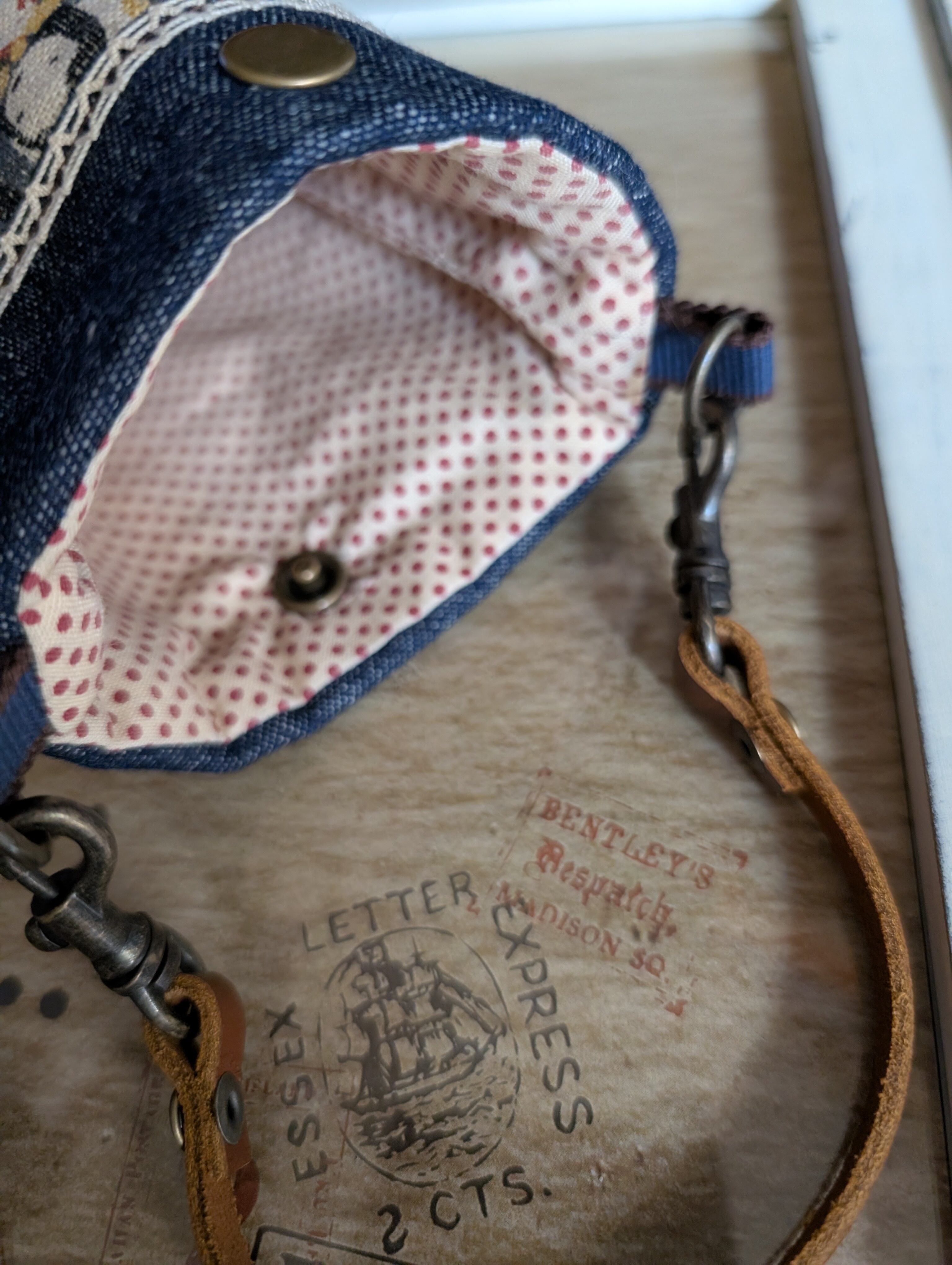 - 内側はクリーム色のドット柄